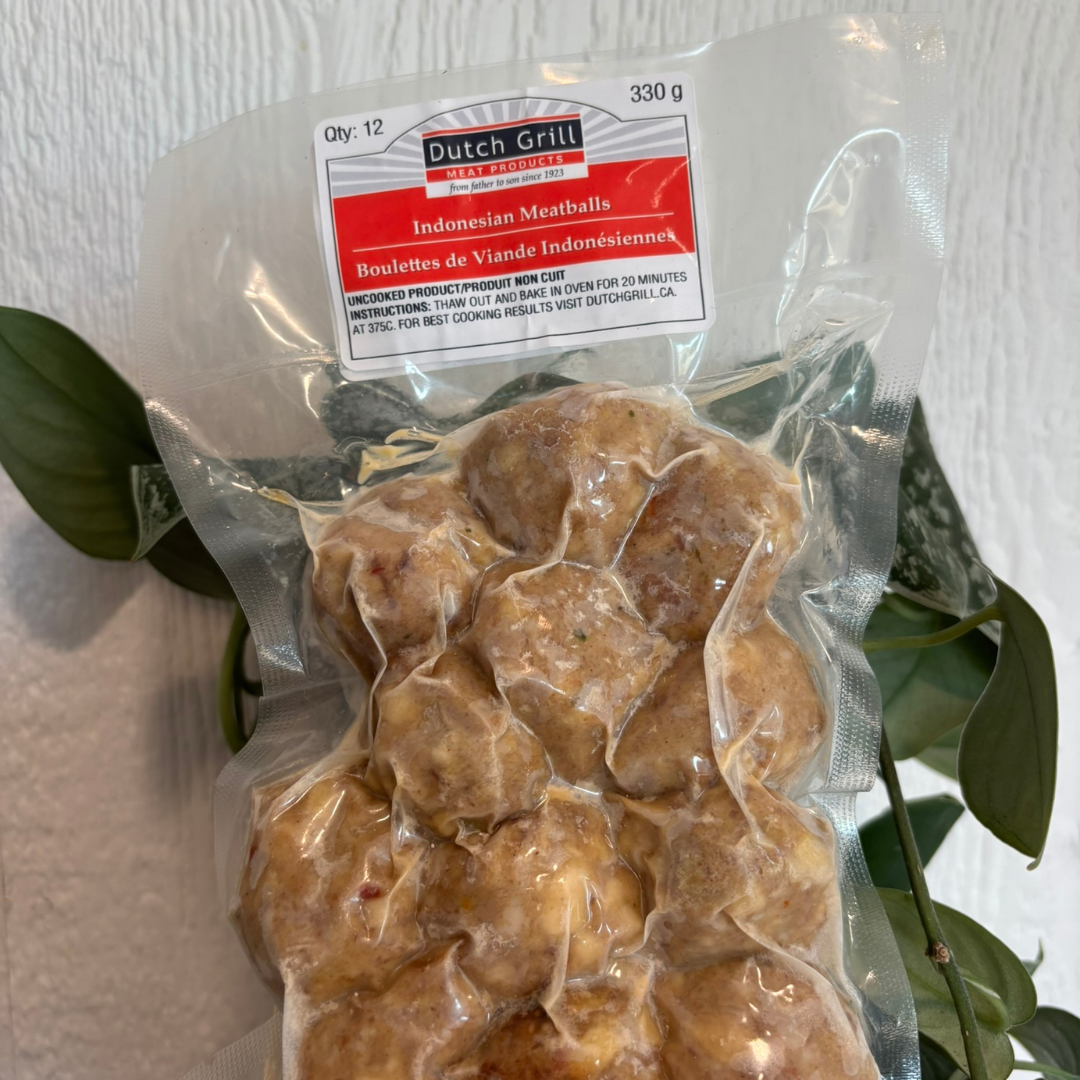 Description: Indonesian Meatballs made by Dutch Grill. Thaw and bake in the oven for 20 minutes at 375.